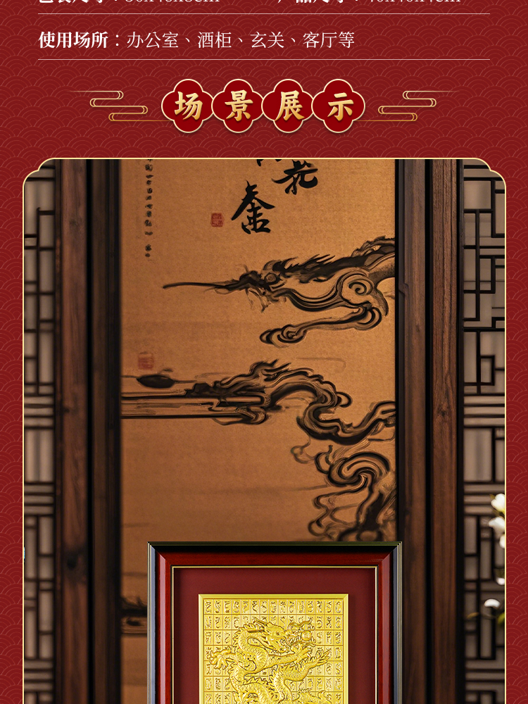 | 龙自古就被视为祥瑞之首,寓意着好运和吉祥。人们通过画龙点睛、舞龙等传统习俗来祈求好运和吉祥。也是幸运和成功的标志,这种象征意义不仅仅体现在皇家和宗教领域,还深入到了社会的各个层面。在民间传说中,龙被赋予了许多美好的寓意,如智慧、勇气和好运等。在墙壁挂上龙的装饰画可以增加祥瑞之气,寓意八方来财,福贵吉祥。 |