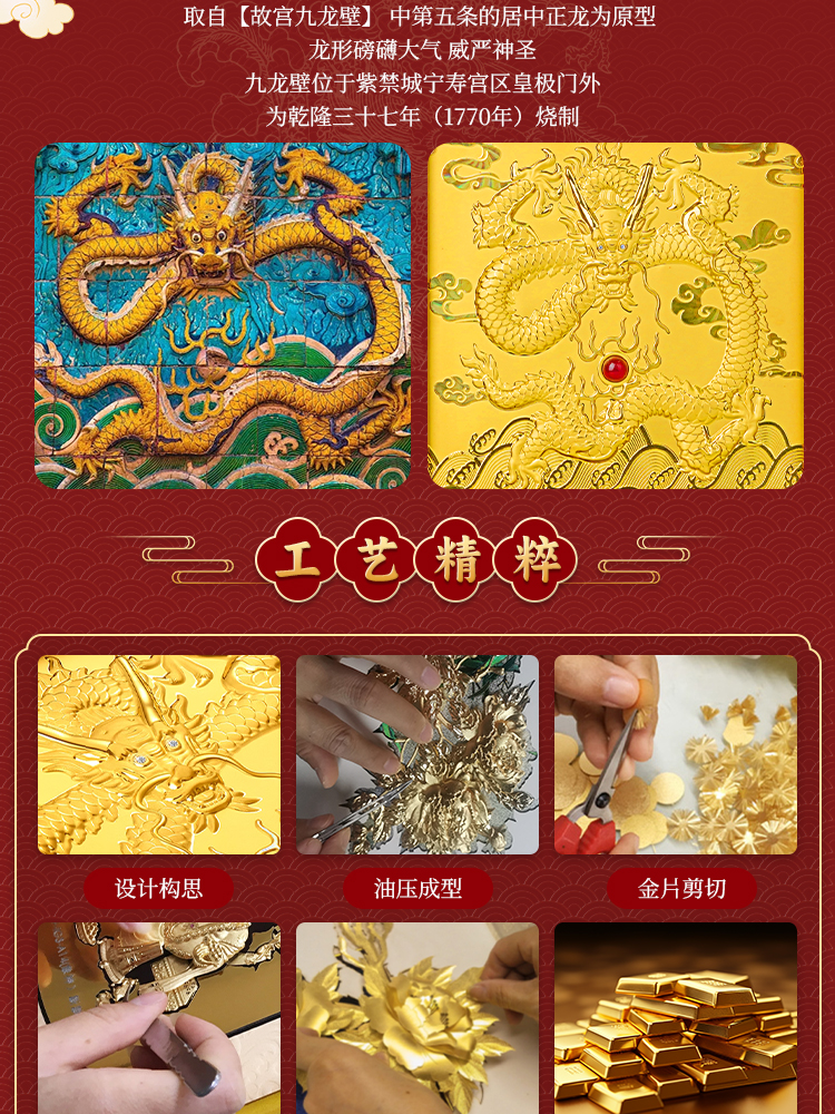 Luxury 24K Gold (999 Pure Gold) Nine-Dragon Wall Art from the Forbidden City – Premium Corporate Gifts, Symbol of Wealth, Power, and Prosperity