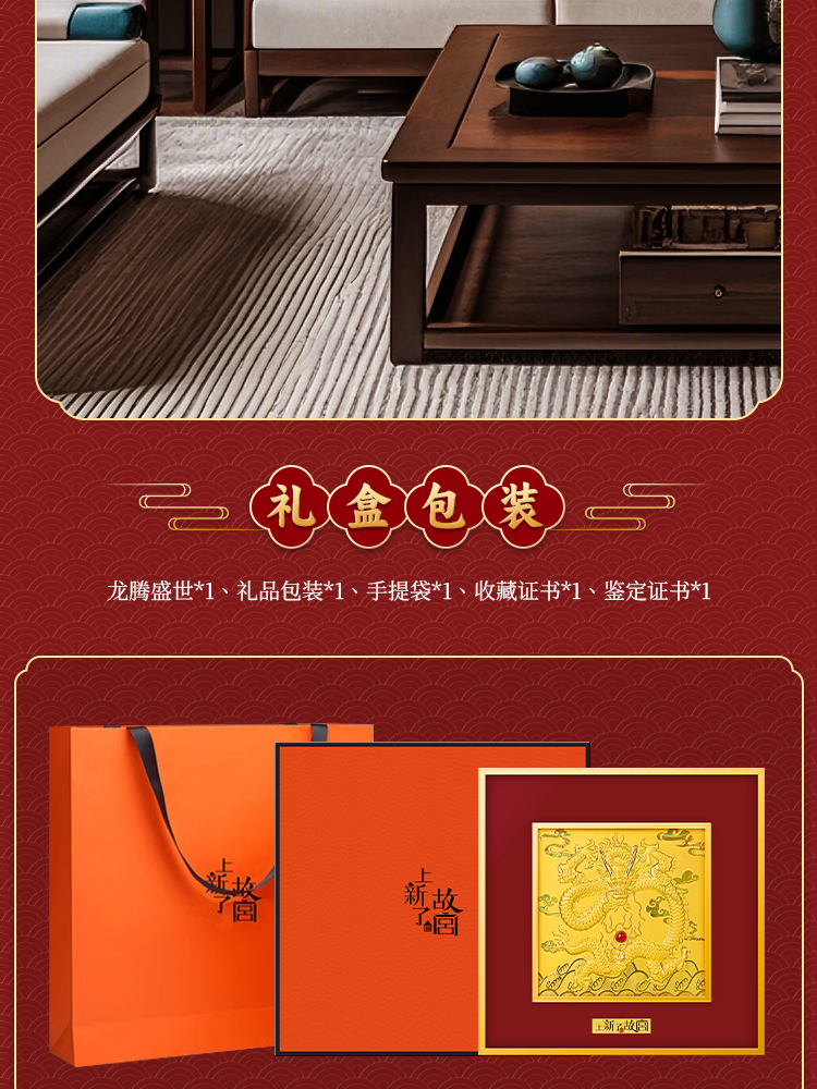 Product accessories 24kgold painting*1, Acrylic protective cover*1, Quality inspection report*1, Packaging box*1, Gift bag*1