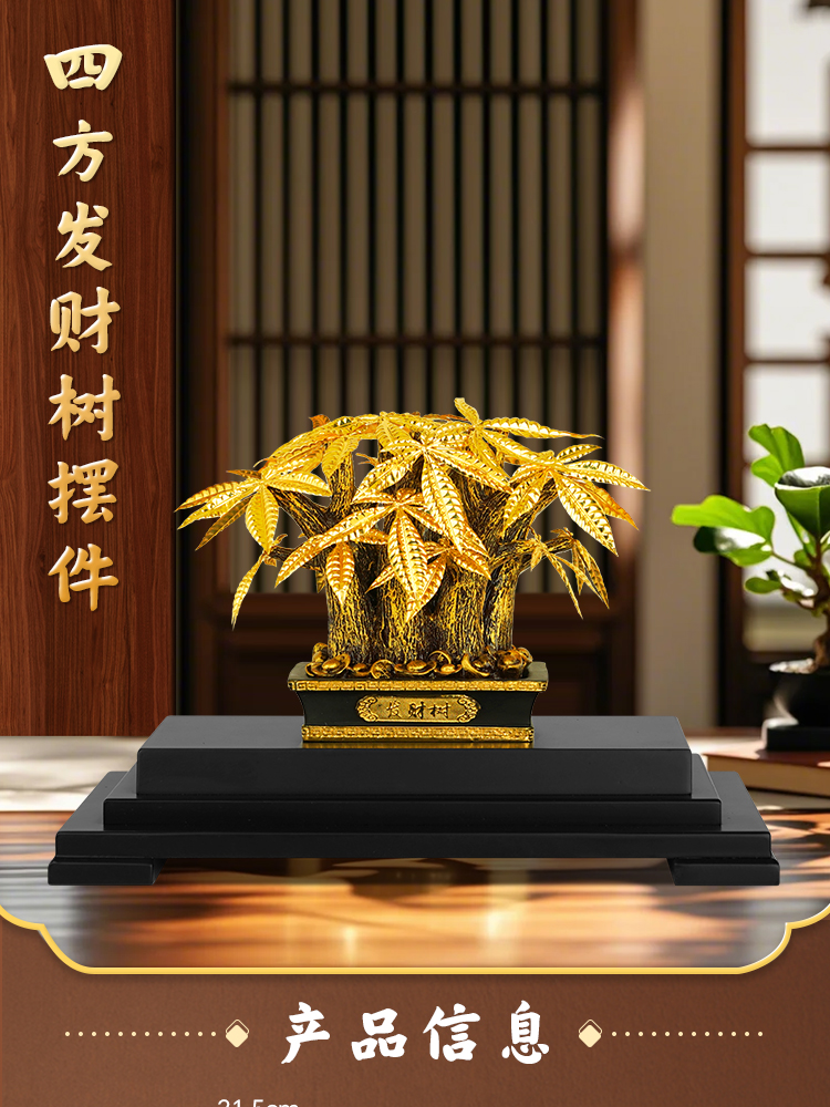 24K Gold Leaf "Four-sided Fortune Tree" desktop decoration ornaments