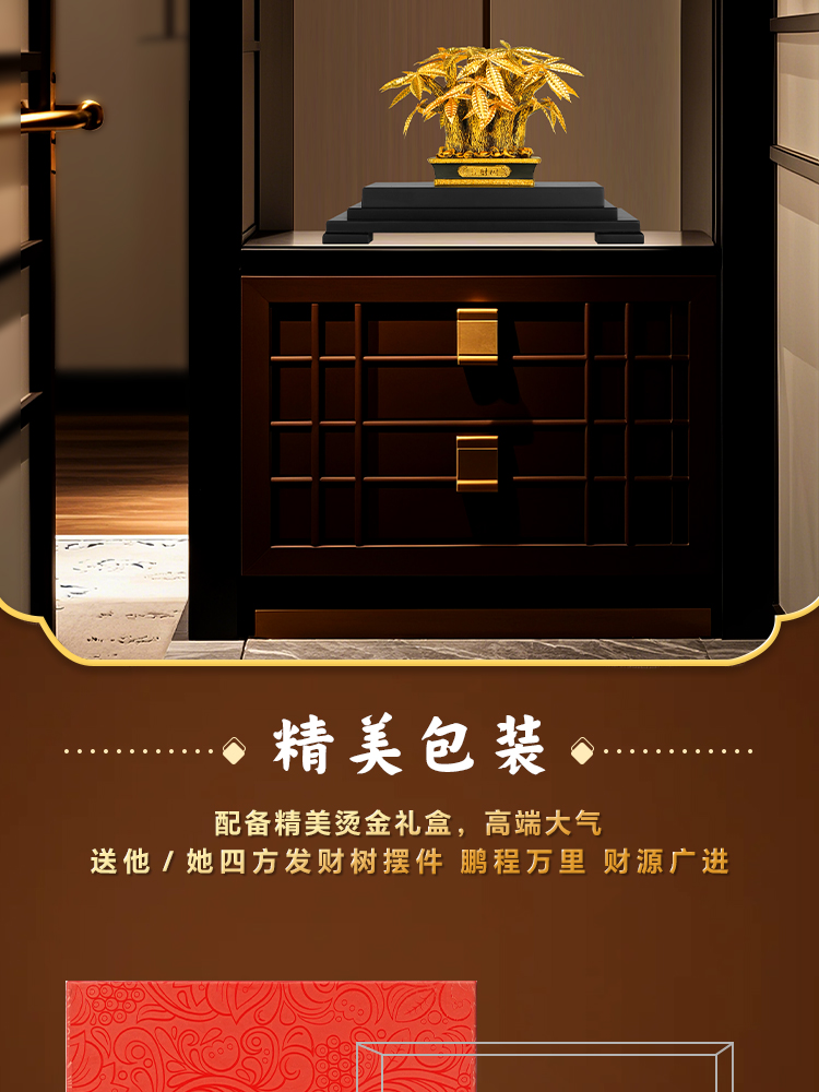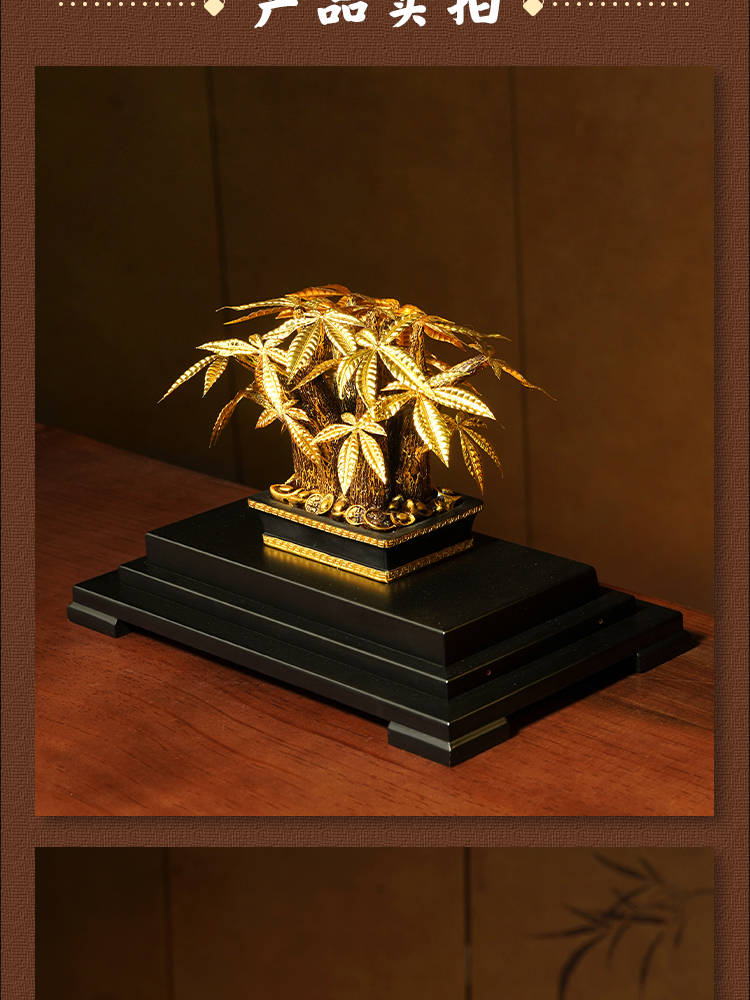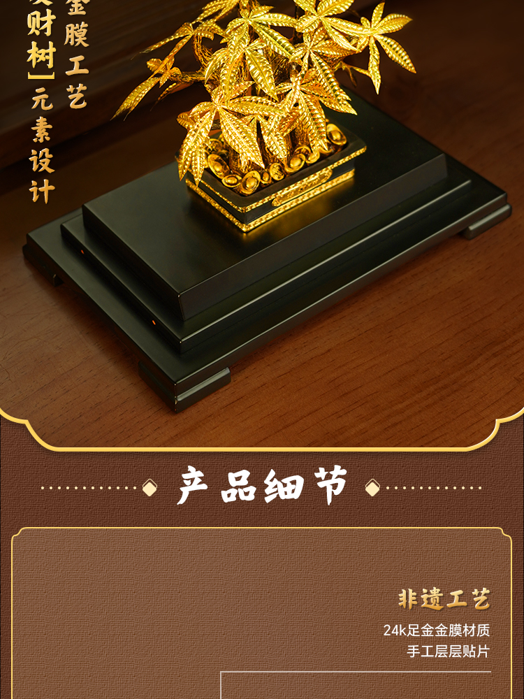 The leaves of the money tree are handmade with pure gold foil and can be displayed for a long time without oxidation or fading. They symbolize wealth, good health, peace, good fortune, and a successful career.